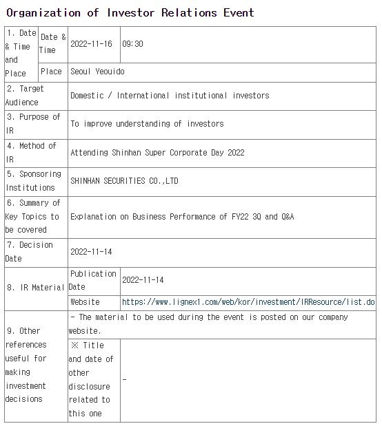 Organization of Investor Relations Event(Nov 16th, 2022)