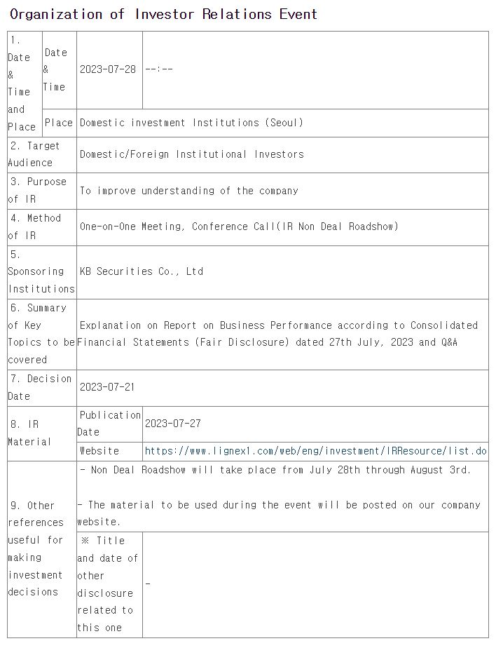 Organization of Investor Relations Event(July 28th through August 3rd, 2023)