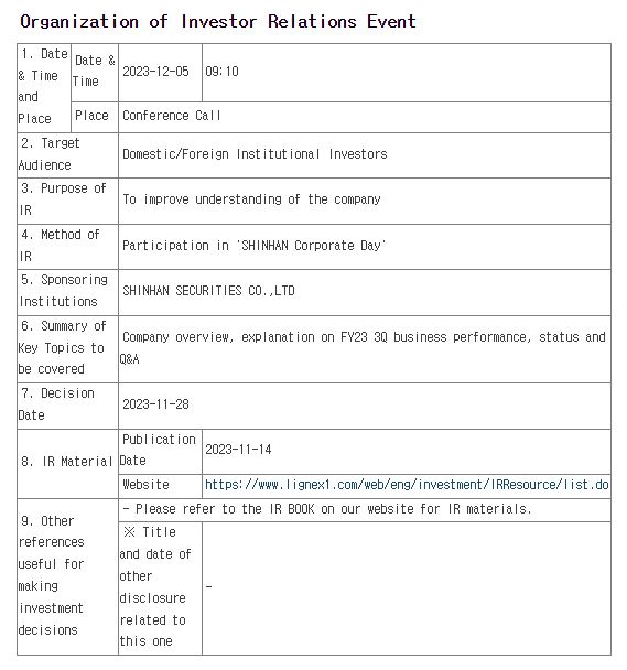 Organization of Investor Relations Event(Dec 5th, 2023)
