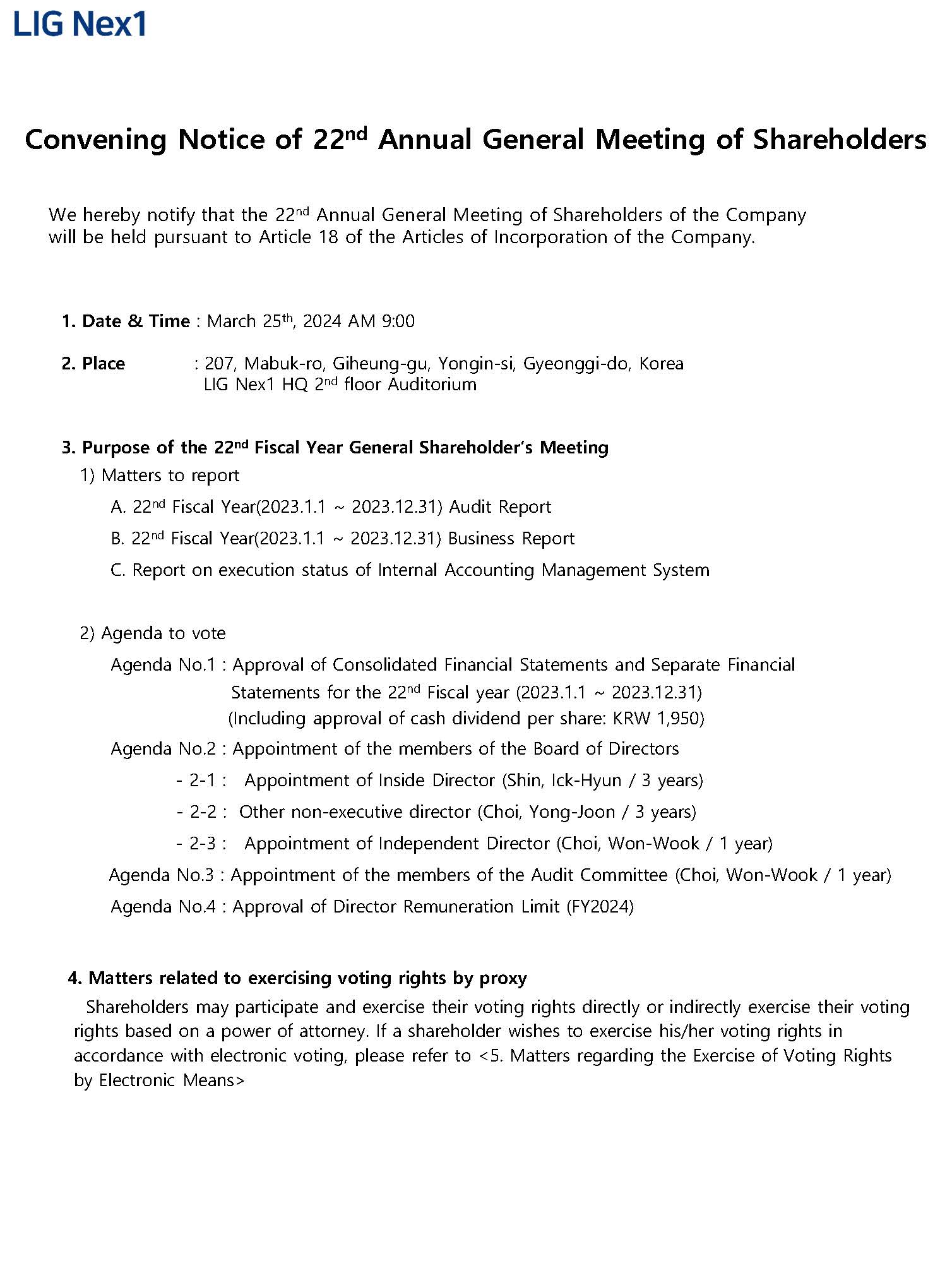 Convening Notice of 22nd Annual General Meeting