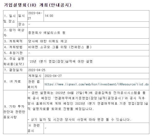 기업설명회(IR) 개최 (2023년 04월 27일)