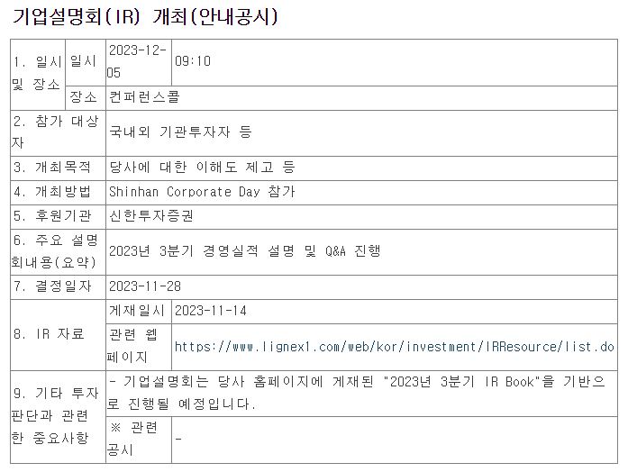 기업설명회(IR) 개최 (2023년 12월 05일)
