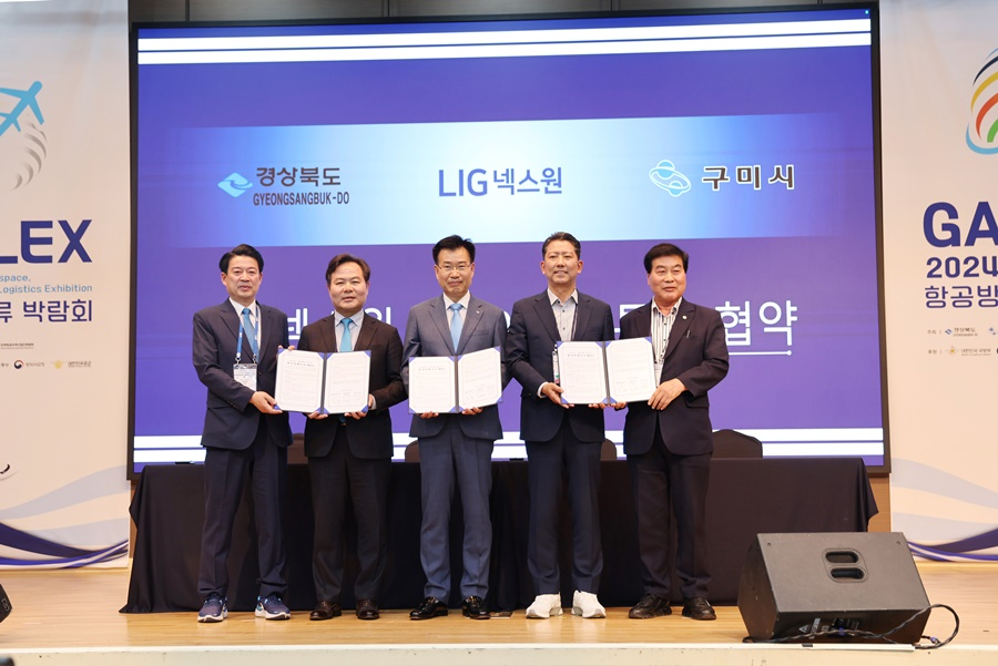LIG넥스원은 구미시와 29일부터 3일간 구미코에서 열리는 '2024 항공방위물류 박람회 개막식'에서 업무협약을 체결했다.